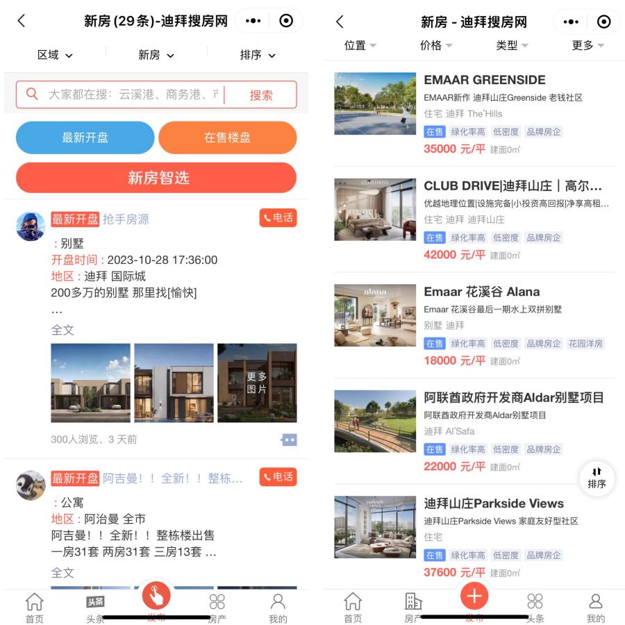 迪搜是华人信息平台中楼盘信息最全面的网站,紧跟市场动态,实时更新迪拜新楼盘的发布信息。对于在迪拜购买期房的人来说,只需要使用这个小程序就足够了。此外,迪拉姆均价已经转换成人民币,对于比较价格非常方便。
