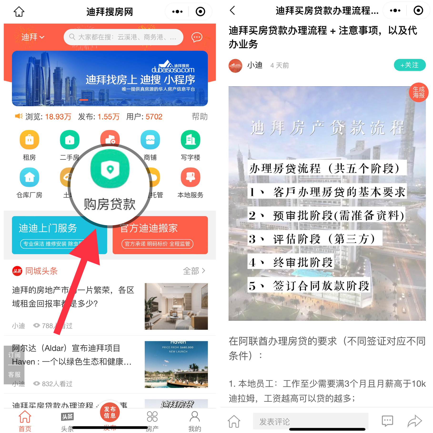 迪搜小程序提供专业的购房贷款服务,由经验丰富的团队操作,顾问经理更是毕业于中国人民大学研究生院的高材生。不论您是在迪拜工作还是经商的外籍人士,都可以办理房贷。对于首次购房者而言,如果房产价值低于500万迪拉姆,最多可以贷款房产价值的75%。如果该物业价值超过500万迪拉姆,则最多可以贷款该物业价值的65%。如此一来,仅需支付少量首付款,就能依靠租金轻松偿还贷款,以房养贷变得轻而易举。